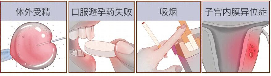 如试管婴儿、吸烟、子宫内膜异位症、紧急避孕失败。