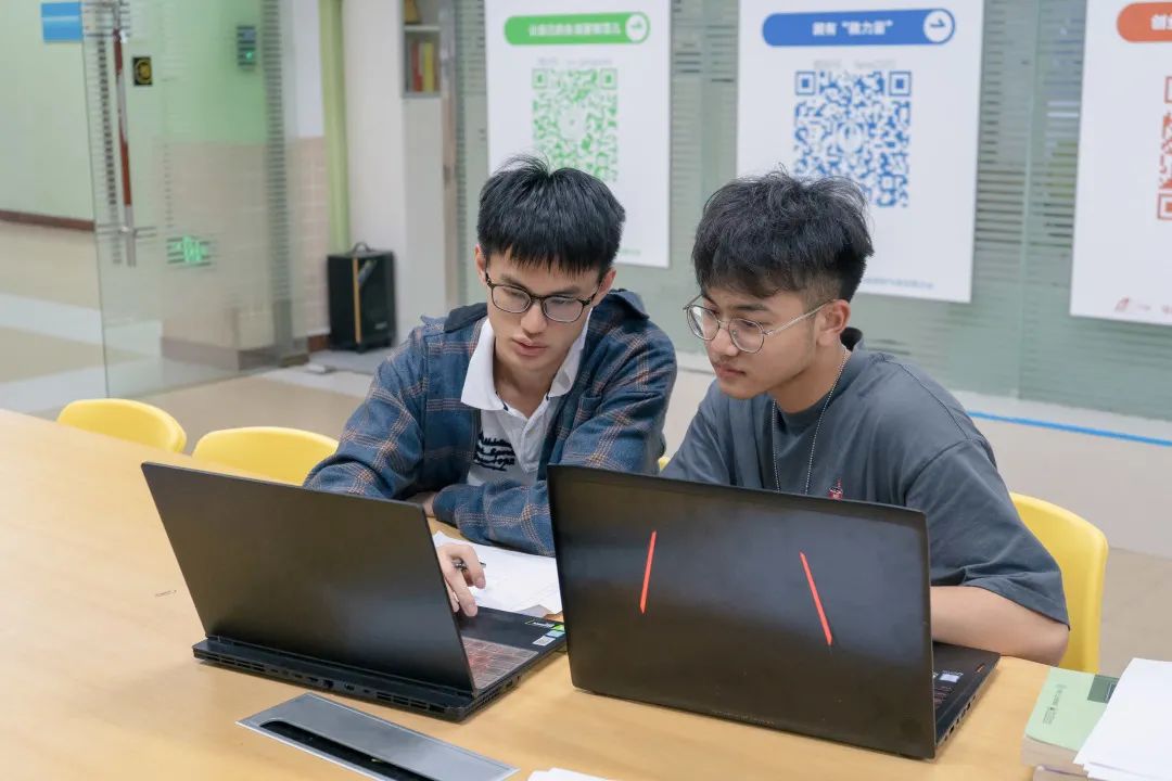 共同创立“漂流书屋”公益平台的2019级的陈杰(右)和郑楷星(左)相识于校科联竞赛部。