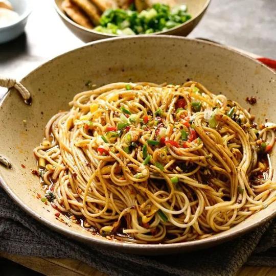 到了夏天,湖北人更爱凉面,一碗凉面加一碗冰绿豆汤!凉面也是用的碱水面,只不过更细。面条先焯热水,接着霸气的湖北人会直接用凉水再冲洗一遍。