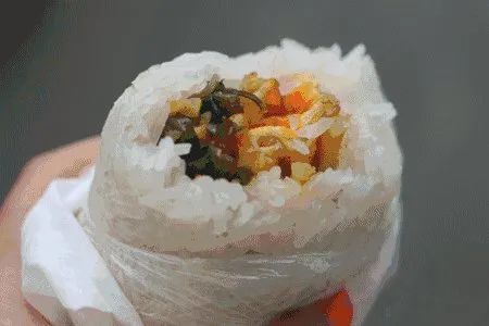 土豆丝、海带丝、榨菜、辣萝卜、酸豆角......小学生很爱最后来一勺白砂糖,再包根酥脆金黄的油条,老板使很大的力气裹紧它,但如果加了太多料,还是会吃着吃着,糯米就散作一团。04 | 糯米鸡