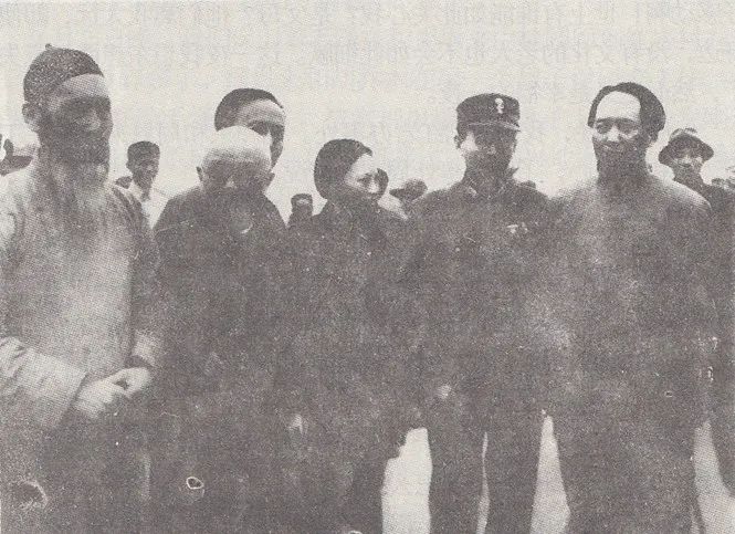 1945年10月11日,毛泽东离开重庆返回延安时,在重庆九龙坡机场同张澜(左一)、张治中(右二)、邵力子(左二)及其夫人傅学文(左三)、郭沫若(邵力子身后)的合影,毛泽东身后戴礼帽者为蒋泽民陈龙的履历更为惊人,原名刘汉兴的他,在东北抗联时期曾给金日成当过参谋长。从苏联回到延安后,陈振东先后在马列学院(中共中央党校)教授游击作战战术,1939年2月调入中央社会部,担任治安科长,一直肩负在边区反奸防特、保卫党中央及领导人的重要任务。
