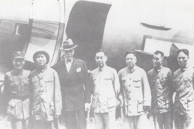 1945年8月28日在延安机场,自左至右:张治中、毛泽东、赫尔利、周恩来、王若飞、胡乔木、陈龙水土不服
