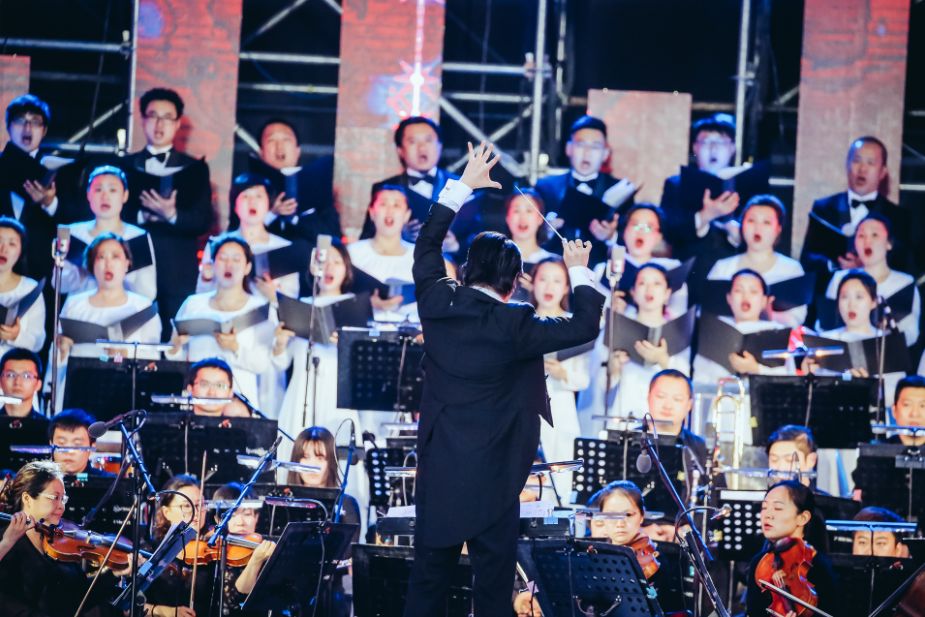 如那些朴实的志愿者们,一遍又一遍擦拭着被雨水光顾过的座椅;如统筹和舞台监督们不轻易离手的密密麻麻的“流程表”,即便面对再多的演职人员,也可以“一纸在手,运筹帷幄,心中不慌”;如技术团队和导播,现场声光配合如梦如幻,而大屏幕中那精确的“切点”和场景转换,十分精准——没错,导播可是以总谱为本进行切换的!