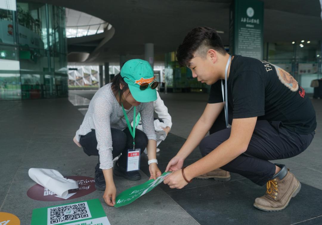事实上,欢乐欣喜、井井有条的背后一定有人“负重前行”。如提前一周进场的搭台人员,或许他们已经看过无数遍清晨的辰山美景;又如早一天进园的幕后工作人员,将每一份地贴“落到实处”,走遍辰山的每一角落,只为让游客少走弯路。