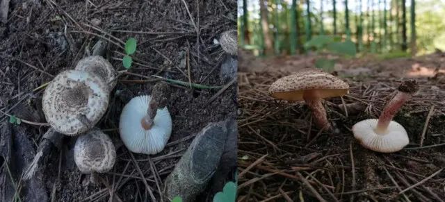 裂皮鹅膏和灰花纹鹅膏:常生于阔叶林或者针阔混交林中地上,具有剧毒鹅膏的三个特征,即头上戴帽、腰间系裙、脚上穿鞋。因一黑一白被称为“蘑界”的“黑白双煞”,其中灰花纹鹅膏1朵即可毒死1个成年人。