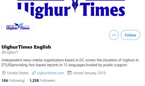 网络上的公开资料显示,这个名叫UyghurTimes English的“东突疆独”分子账号,是由一群在美国华盛顿的“东突”分子建立的。他们自称是“独立新闻组织”,每天发布“基于事实”的信息。