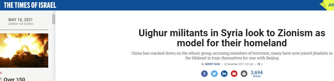 所以,这个“东突疆独”分子操控的账号会发帖吹捧以色列“尊重穆斯林”,就让人不得不怀疑他的身份了:他到底是个真正穆斯林,还是一个打着“穆斯林”旗号的美国工具人呢?最后,有国外网民还扒出,在2017年的时候,《以色列时报》曾经转发过一篇美联社撰写的报道,内容是说这些“东突疆独”分子居然把“犹太复国主义”当成了榜样,想要效仿以色列的方式去搞“疆独”。