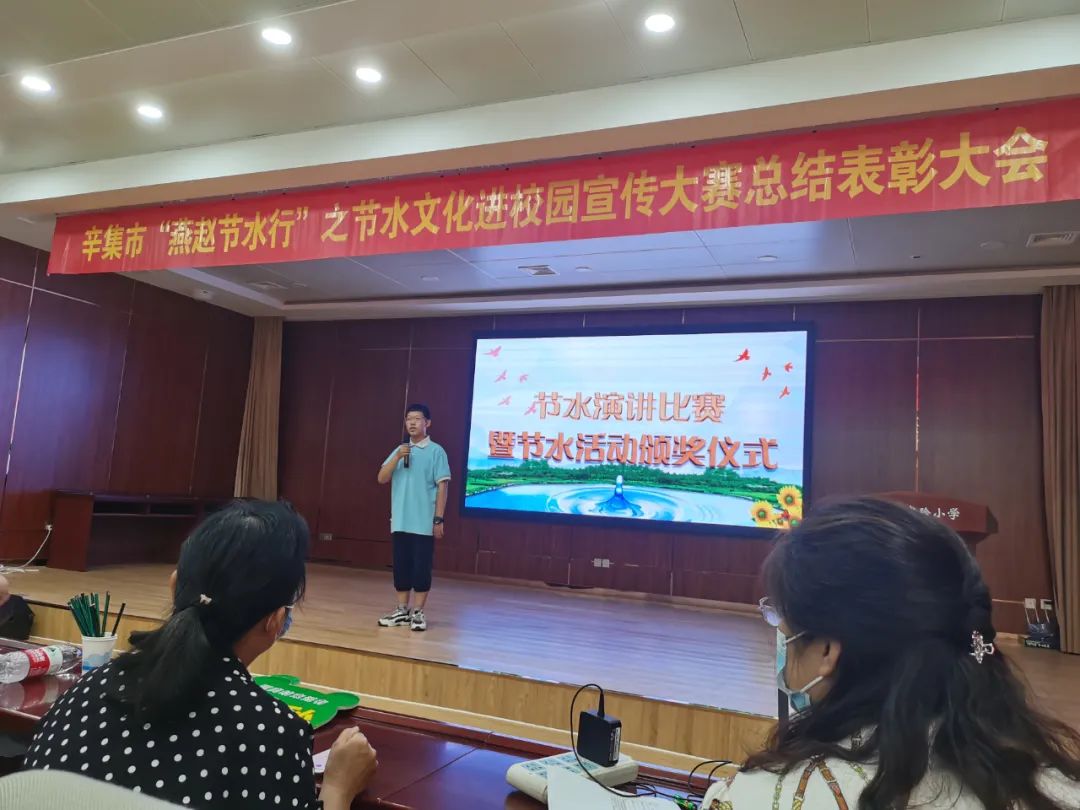 在节水演讲比赛现场,17位来自我市五至八年级的学生选手紧扣“珍惜水、爱护水”的主题,激情饱满、语言生动地讲解了水资源对人类生存发展的重要意义,介绍了我国水资源的严峻形势,并结合自身节水爱水的生动案例,讲述了日常节水的做法和小技巧。