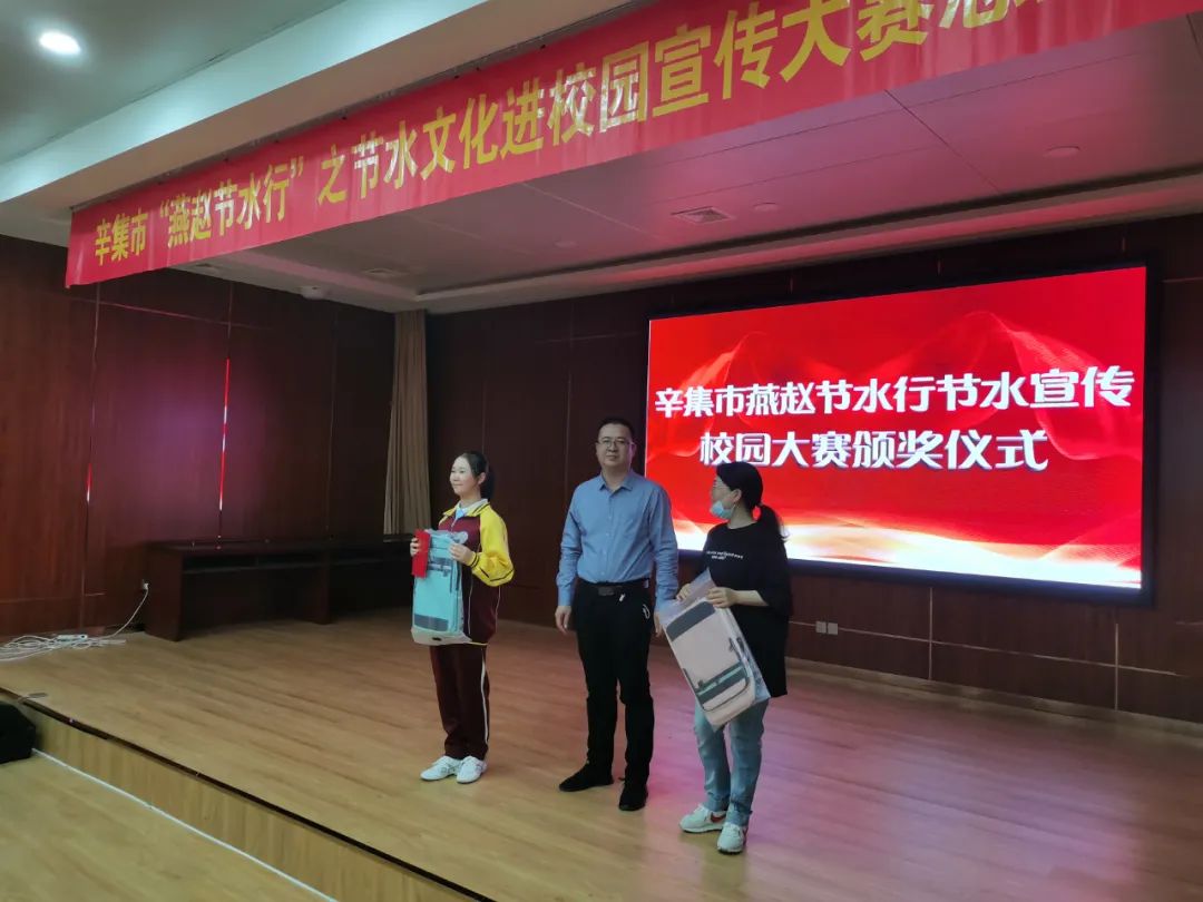 市水务局工作人员为获得演讲类二等奖的获奖同学颁奖