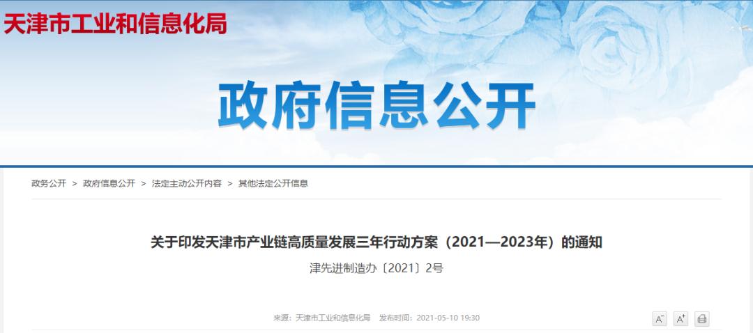 近日,天津市工业和信息化局网站发布《天津市产业链高质量发展三年行动方案(2021—2023年)》。《产业链方案》提出:
