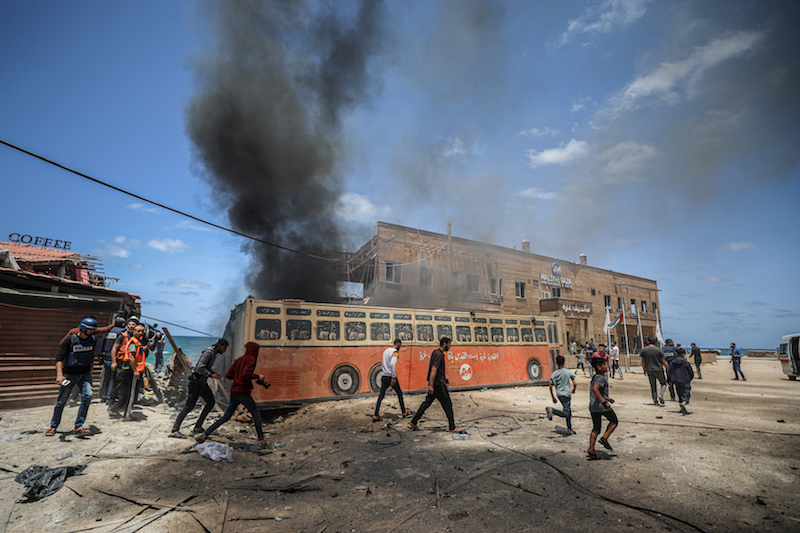 2021年5月17日,加沙地区,当地遭受以色列的空袭。因双方武器存在巨大差距,哈马斯及其所在的加沙地带遭受的人员伤亡和财产损失更为严重。