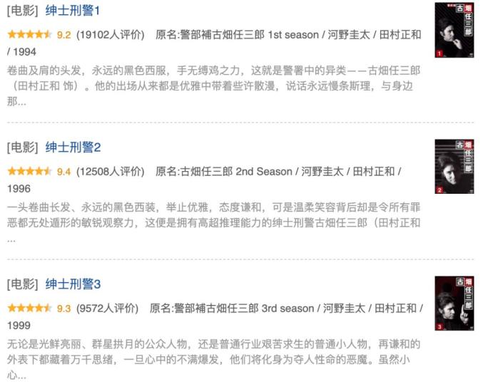 大部分中国影迷认识田村正和是通过《古畑任三郎》系列三季的豆瓣评分都在9分以上。