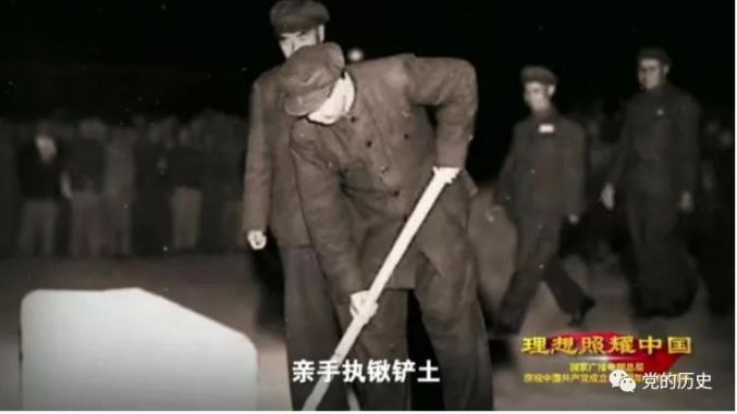 9月30日,中国人民政治协商会议第一届全体会议闭幕式后,全体代表在北京天安门广场举行人民英雄纪念碑奠基礼。毛泽东宣读碑文后,亲手执锹铲土,为人民英雄纪念碑埋下了第一块基石。
