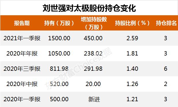 其中,持有最多的刘世强自2020年一季度以500万股新进成为太极股份的第3大股东后,已连续4个季度加仓。如果我们根据每期末市值粗略计算,那么刘世强买入太极股份的总成本大约在4亿元左右,而当前,持有1500万股的总市值约为3.01亿元,因此刘世强的浮亏或已达到1亿元。