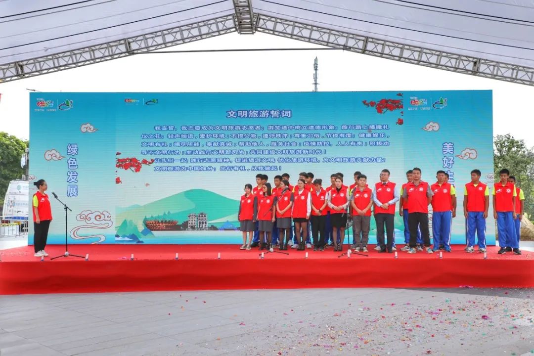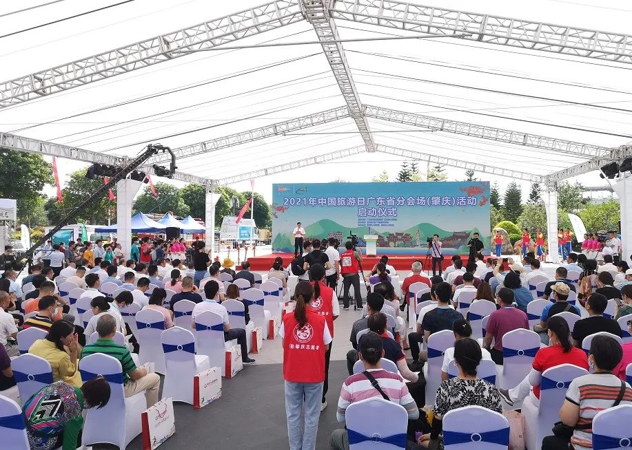 △上图:我市部分星级酒店、A级景区和旅行社代表约30人宣读了文明旅游倡议书;下图:“肇庆,让世界听见大湾区的美”首发仪式。王焌鑫 摄