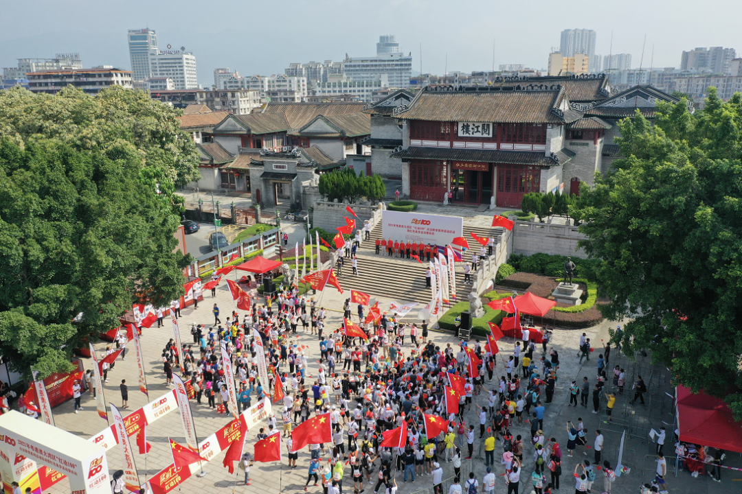△5月9日,2021年粤港澳大湾区“红动100”社会体育系列活动暨红色徒步活动肇庆站在阅江楼举行,共500名市民游客参与。梁亮 摄