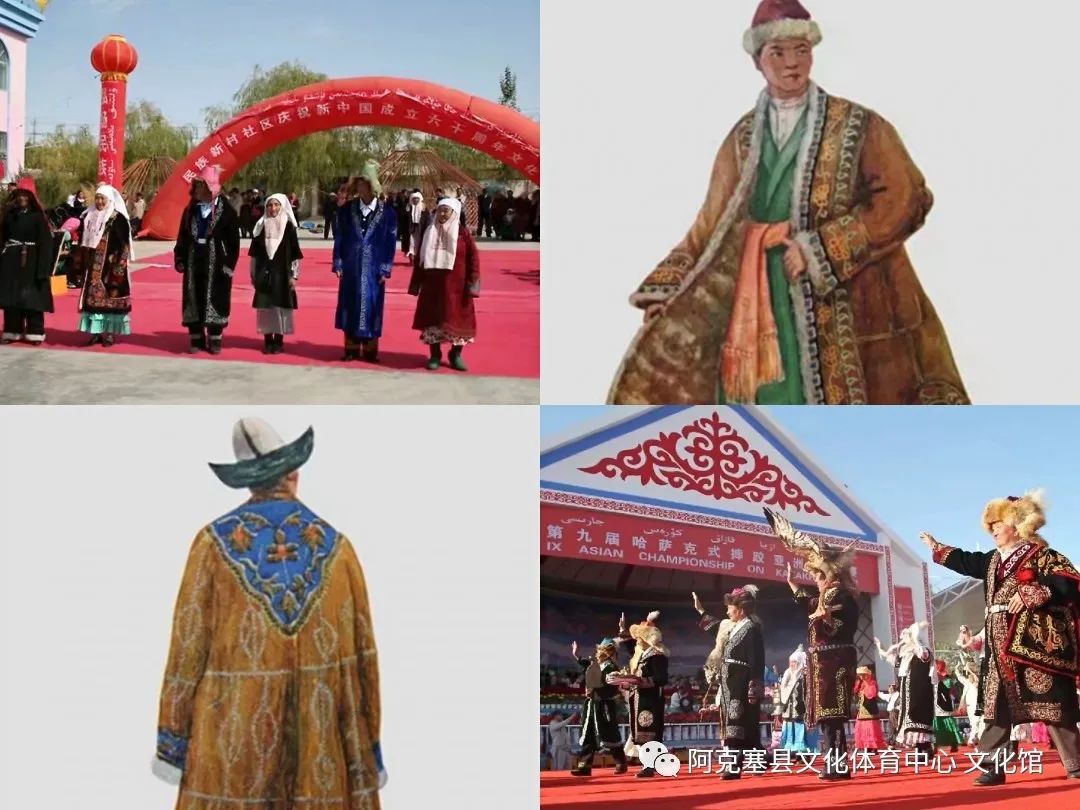 关于袍子的谚语哈萨克族为方便骑乘,其服装款式大都比较宽大,多为袍子,且十分结实,经久耐用 。袍子对哈萨克人的是很重要的。另外,袍子对于哈萨克民族来说,还是身份的象征。一般来说,穿袍子的人家境优越,具有较高的地位,反映出哈萨克族服饰与社会地位之间存在某种内在联系。如哈萨克族谚语: