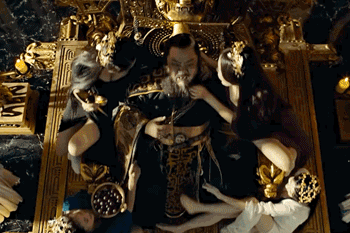 电影中董卓艳福不浅,被一众美女簇拥伺候。