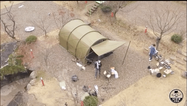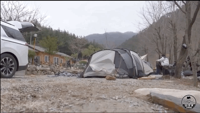 但好在「全能梗王」寿根哥还是有点搭帐篷的经验。在他的统筹之下,费尽九牛二虎之力,才成功将帐篷支棱起来。