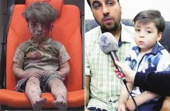 同样的事情曾经发生在叙利亚。我不知道你记不记得一张著名的照片,一个蓬头垢面的男孩,他是从阿勒颇的瓦砾堆里被救出来的,然后被送上了救护车,他的照片被所有报纸印在头版上,他的名字叫奥姆兰·达纳什(Omran Daqneesh)。他全家生活在被叛军占领的阿勒颇东部地区,这些圣战分子得到了土耳其和海湾国家的支持,并由美国提供武装。这群乌合之众被叙利亚政府军和俄军赶出了阿勒颇。当时还发动了空袭。