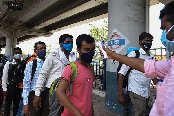 2021年5月13日,印度孟买一处火车站的乘客接受体温检测。图|新华社二是反季节。