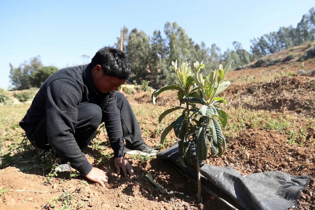 曾经的荒山上,一株株枇杷树长势喜人。段毅 摄按照生态修复示范区的战略定位,东川实施1600米海拔以下区域造新银合欢林、退耕还林、小江流域河漫滩绿化、苗木基地建设和林产业发展等行动,让满山见绿。“对许多贫困地区来说,绿水青山就是金山银山。但东川和其他贫困地区不一样,要绿色发展首先要有绿水青山、要有树。”胡江辉说。