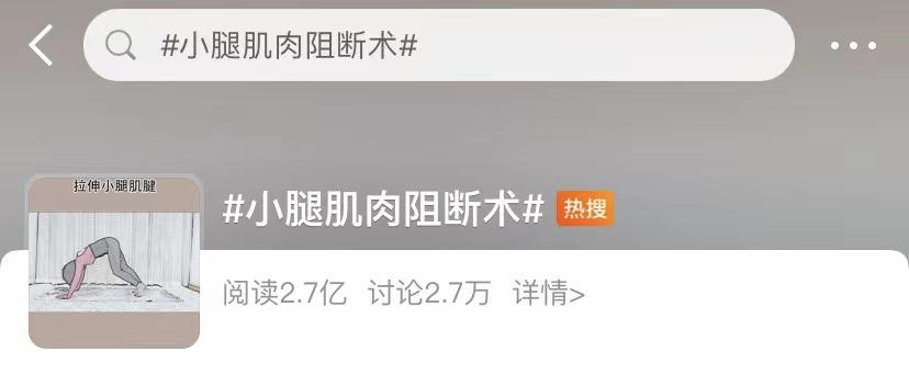 近日,话题#小腿肌肉阻断术#冲上热搜,揭露了一种疯狂的“瘦小腿”方法,引发2.7万讨论↓
