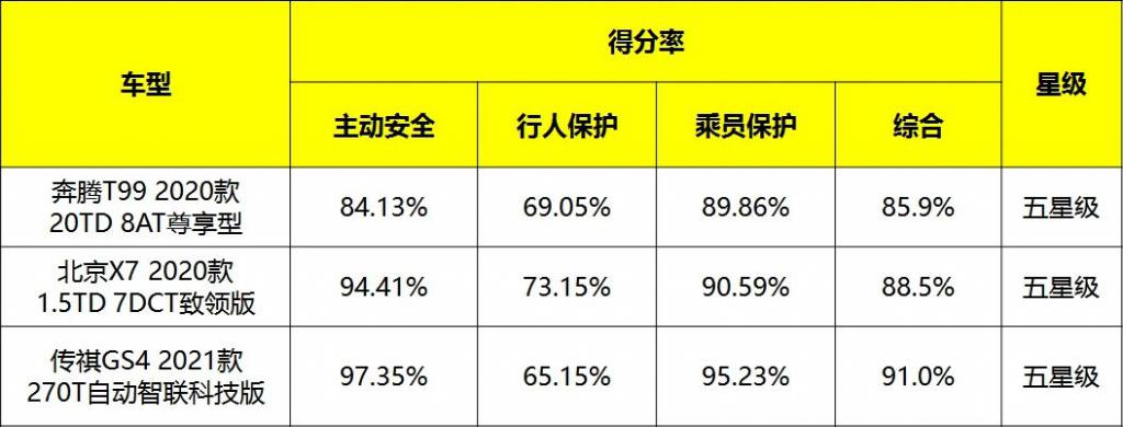 5月18日,2021中汽测评C-NCAP技术解析暨CCRT结果发布会在天津举行。此次放榜的三款车型为北京X7、奔腾T99和传祺GS4,它们均为自主品牌SUV,C-NCAP(中国新车评价规程)的成绩均获得五星评价。