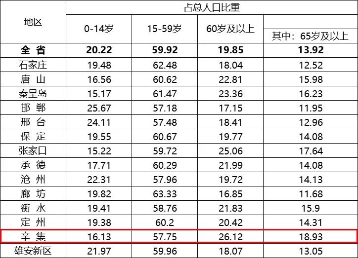 河北全省各市(含定州、辛集市)、雄安新区的人口年龄构成有关数据: