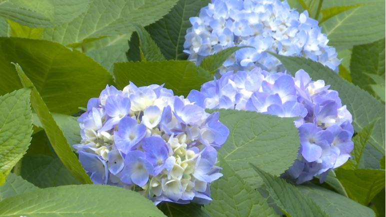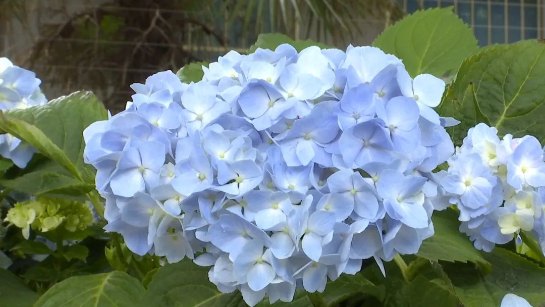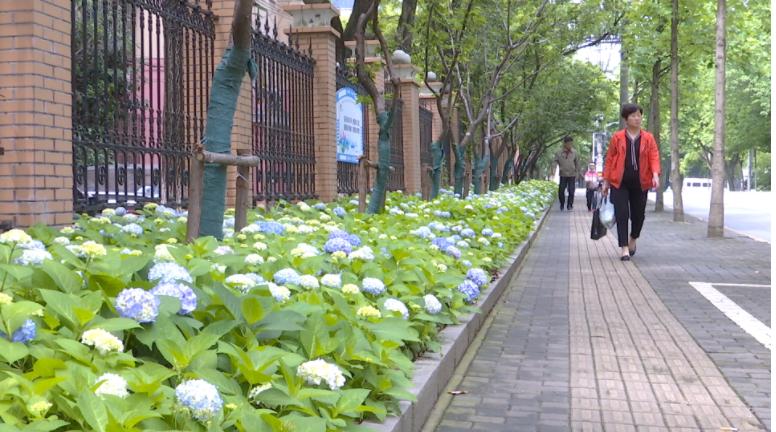在牡丹江路、密山东路等处,无尽夏正值开放的盛季,直径10厘米左右的蓝色和粉色花球悬挂枝头。据了解,无尽夏的花期可以从5月底一直延续至8月份,贯穿整个夏季,因此得名。5月末到6月初则是无尽夏的第一波盛开期。