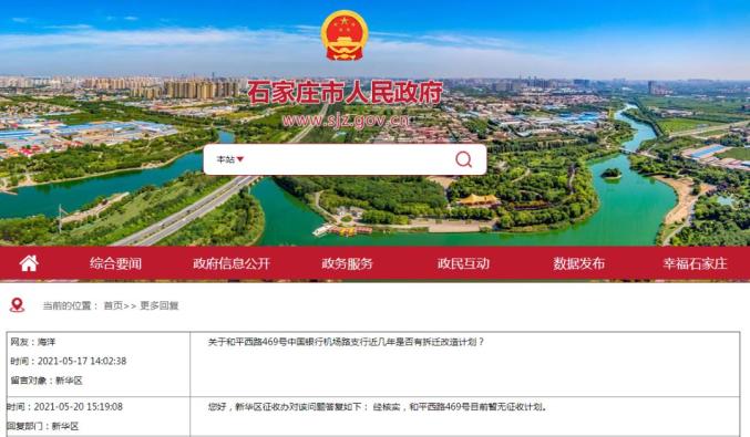 新华区征收办回复:经核实,和平西路469号目前暂无征收计划。