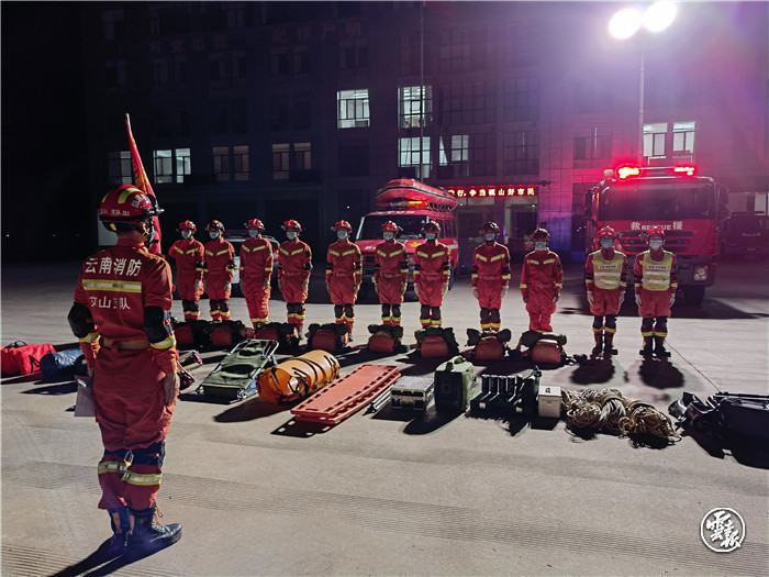 云南玉溪峨山大队地震前突分队,救援分队集结完毕。云南玉溪高新区大队前突分队1车5人,救援分队2车10人,共3车15人已集结完毕,等待指令。
