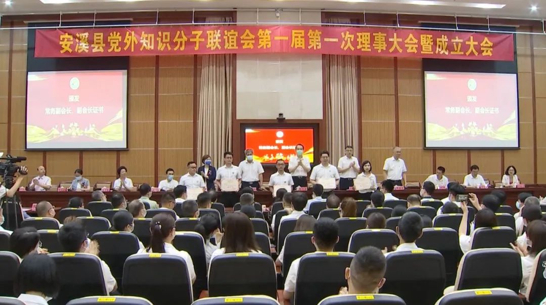 仪式上,出席活动的领导嘉宾分别为安溪县党外知识分子联谊会会长、监事长、秘书长、常务副会长、副会长等授牌、授印、颁发证书。
