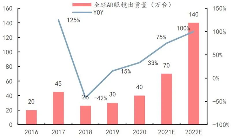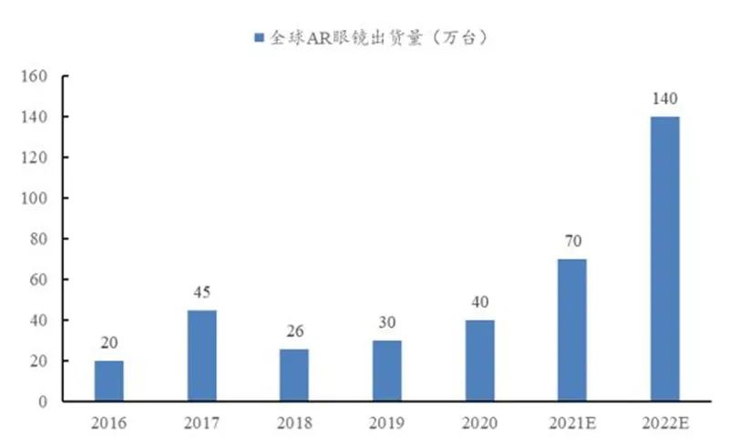 ▲ 2016-2022E 全球 AR 眼镜出货量(万台)