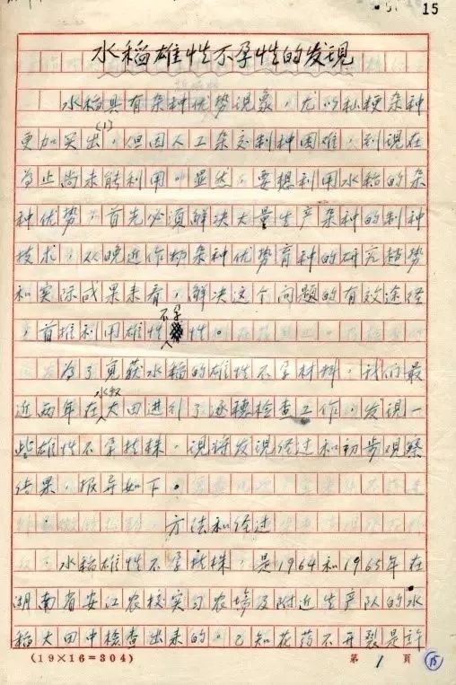 这样经过反复试验,积累了正反两方面经验和教训,再经过反复分析论证,这一年的10月,我把初步研究结果整理撰写成论文《水稻的雄性不孕性》,并投稿到中国科学院主办的《科学通报》杂志上。
