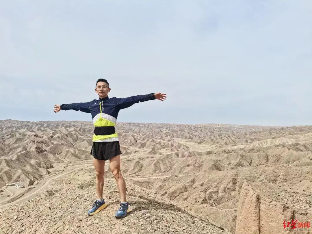 网民“玲珑心”是四川绵阳的一名跑者,和另外三名绵阳的跑者一起参加了在甘肃省白银市景泰县黄河石林景区举行的黄河石林山地马拉松百公里越野赛。