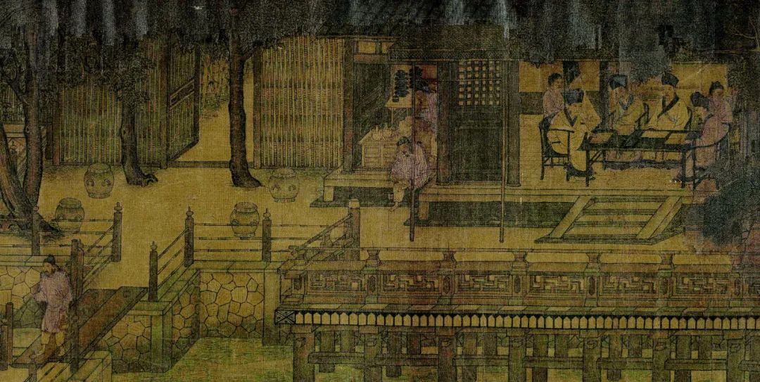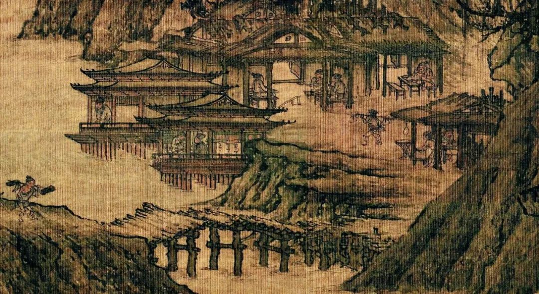 北宋 李成 《晴峦萧寺图》(局部)为一处供旅人歇脚停留的旅店,店内或只提供饮食,无住宿服务。