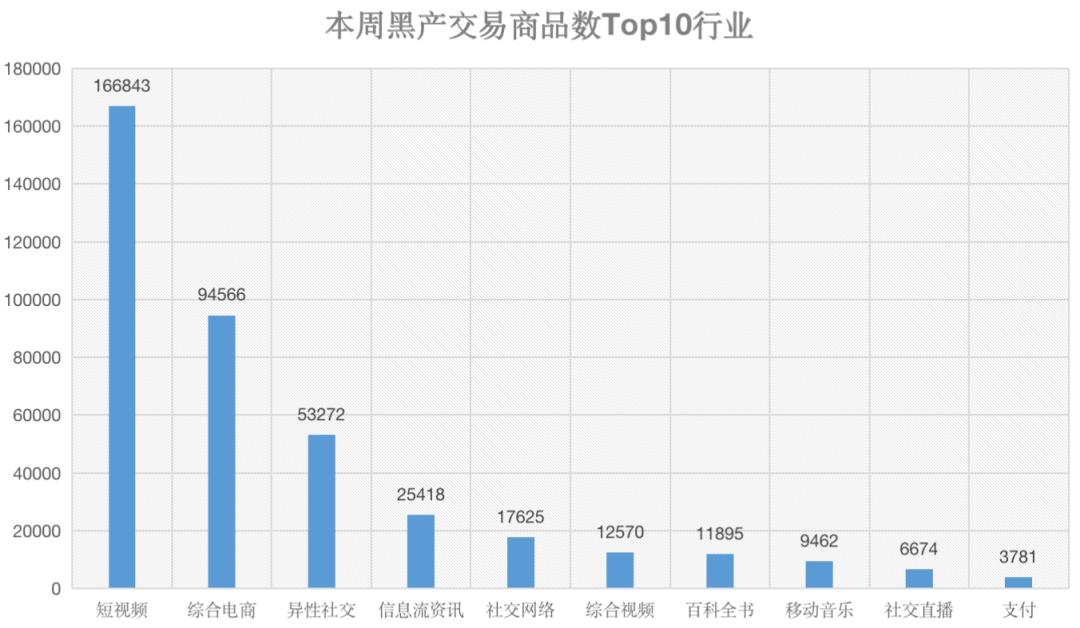 2.3 黑产交易风险情报以下是以行业纬度对5月11日至5月16日黑产交易商品数量变化统计结果: