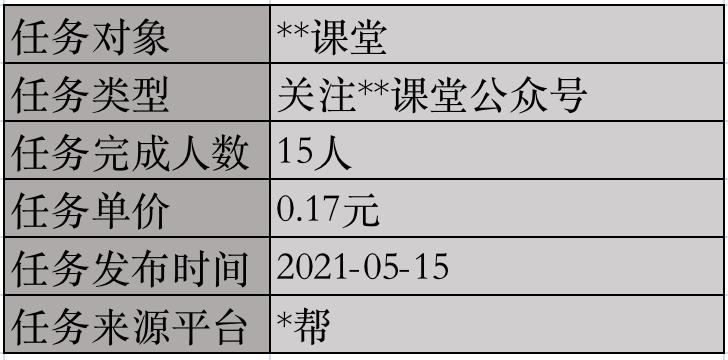 本周猎人君在*帮的真人众包平台发现存在一类关注官方公众号的任务,此类任务要求关注某在线教育的公众号,并且保持一定关注时间,此外无任何要求,任务发布者并不会从中获利,因此猜测此类行为主要是渠道为完成平台要求而进行的渠道作弊。