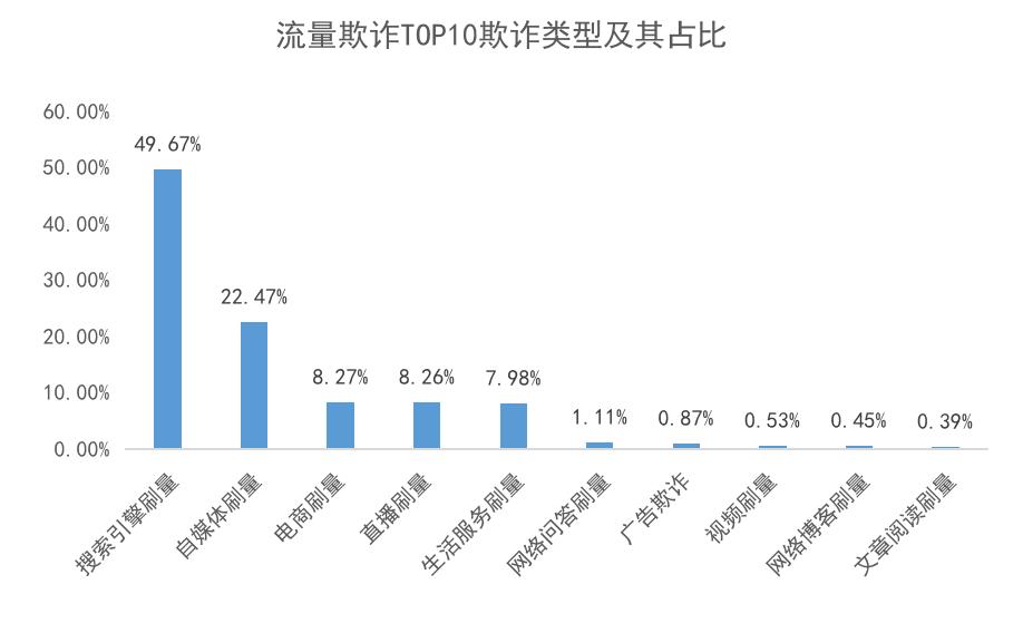 以下是永安在线情报系统监控到的,5月10日至5月16日,流量欺诈TOP10欺诈类型及其占比:
