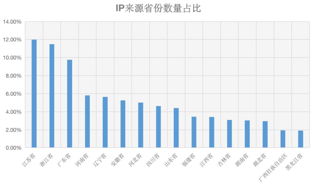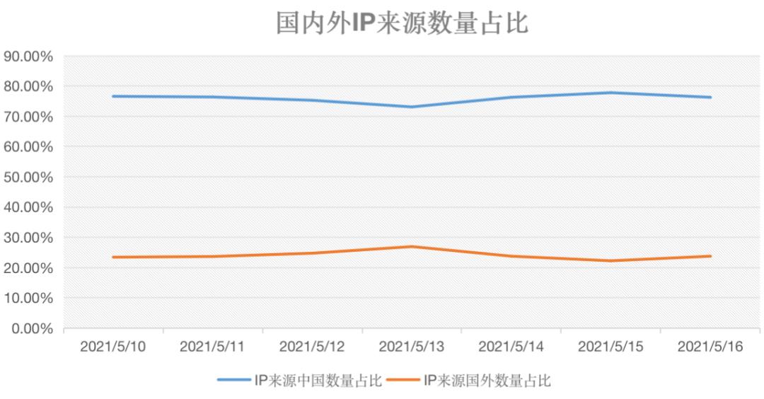 图8-1 IP来源省份数量占比5月10日至5月16日,国内外IP来源数量占比: