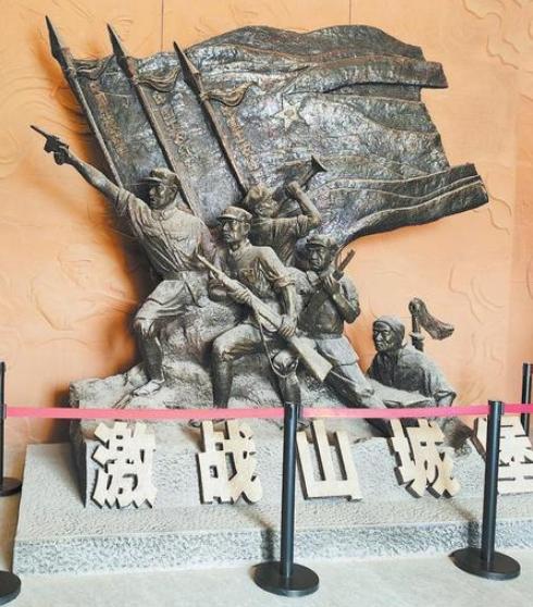 环县山城堡战役纪念馆内展现红军战士英勇作战的雕塑。选定歼敌战场