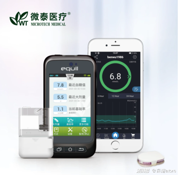 上世纪60年代,已经有医学家研究通过皮下注射胰岛素,70年代末期机械胰岛素泵开始被广泛应用。今天,很多糖尿病患者对于胰岛素注射已经十分熟悉,管路式和无管路贴敷式两种是目前主要的两种胰岛素泵。微泰医疗则将目标贴敷式胰岛素泵Equil的研发上,相比较管路式胰岛素泵,体型更小的贴敷式胰岛素泵,消除了外部管路所带来的不便,减少外部管路被扭结、弯曲、拉扯所带来的治疗风险。
