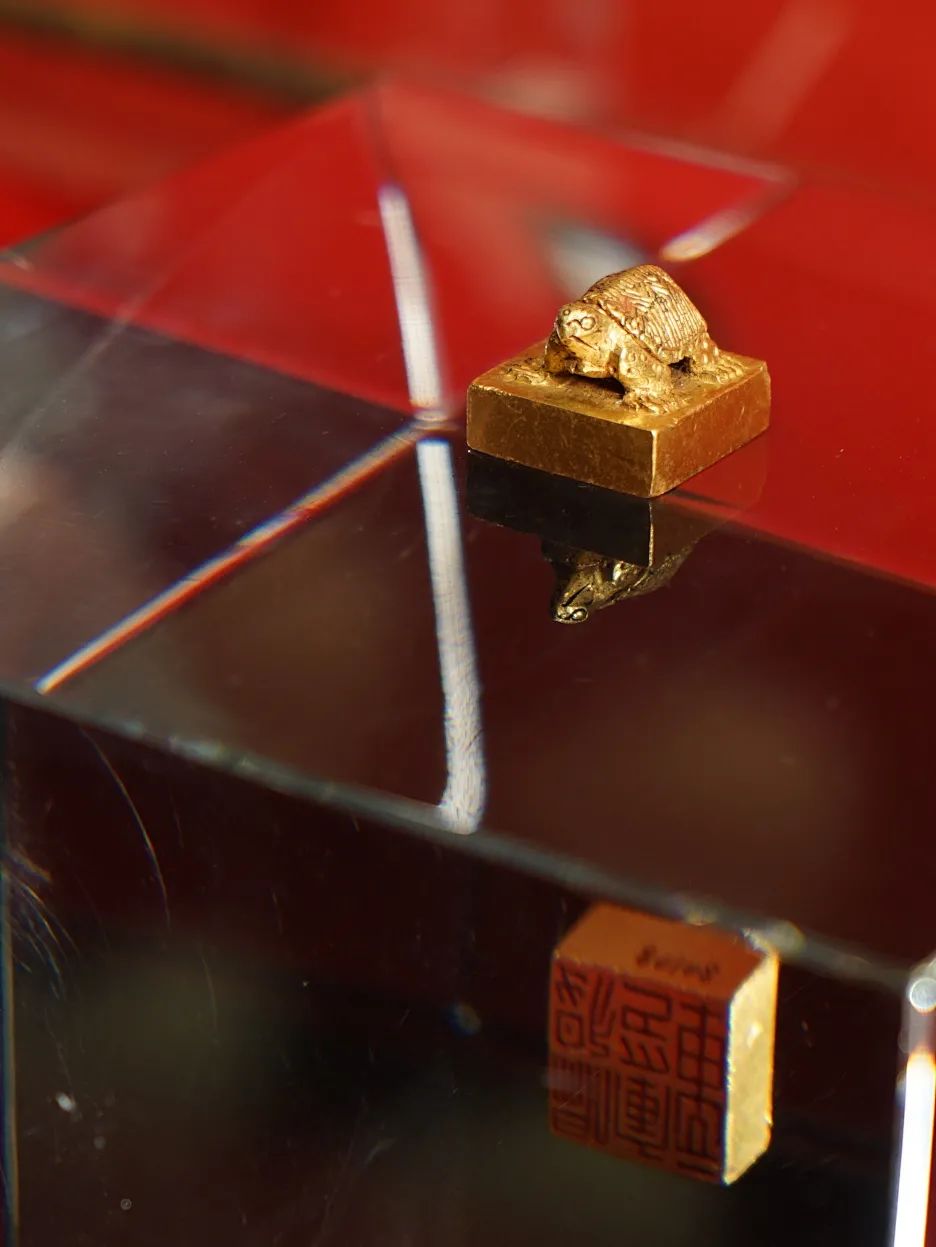 “魏归义氐侯”金印,钮上是一只跪卧状双峰骆驼,身下有圆形穿孔方便系带。印面镌刻着小篆体的“魏归义氐侯”几个字。这是曹魏王朝颁赠给地处西北、归顺中原的氐族部落酋领的印信。