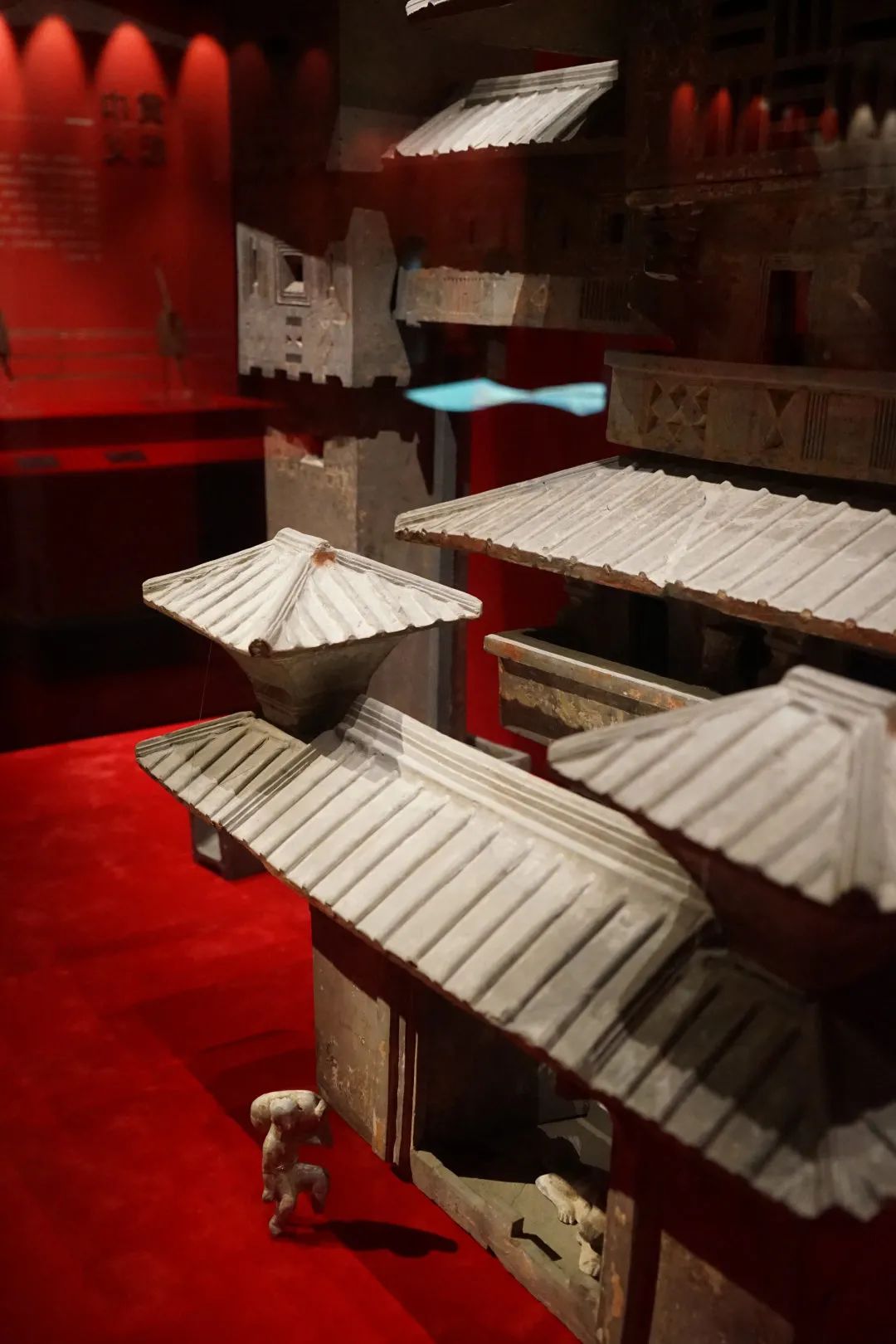 于是,在展厅里我们即可看到东汉时的陪葬器物异常丰富,比如住的高楼一定带有粮仓,这还不够,还有仆人仿佛扛着米袋。“事死如生”,死后的生活几乎已经完备无缺。