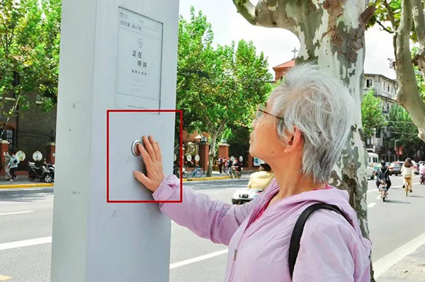 一位老年乘客在出租车候车点按下“一键叫车”按钮 本文图均为 上海交通委供图