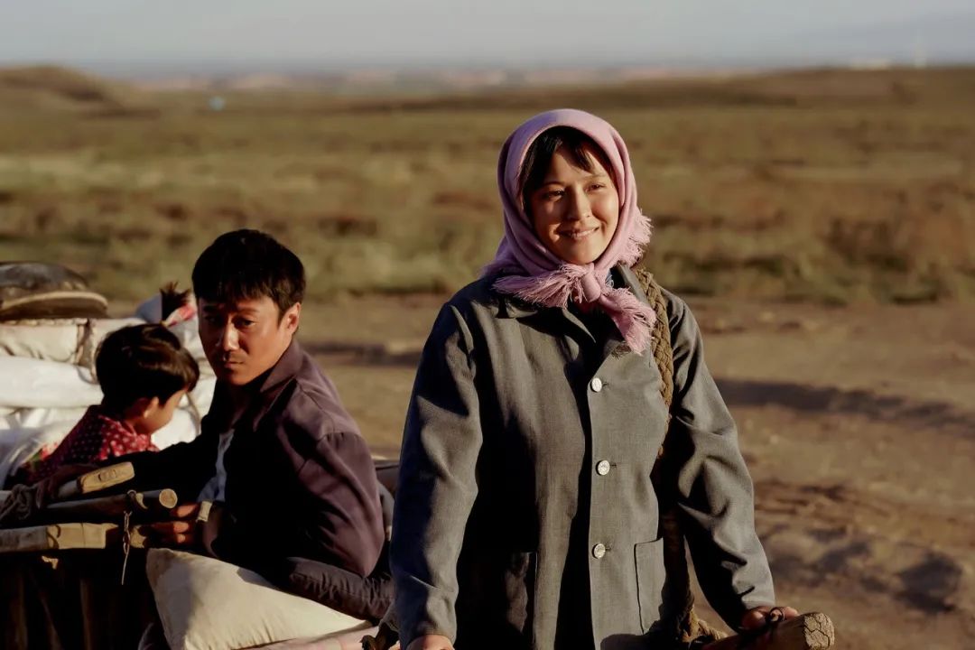 水花拉着丈夫孩子和全部家当,走了七天七夜,终于走出大山,期间用笑容和山歌为自己打气水花拉着家人走在戈壁滩上唱的那段歌也是,拍的时候自然而然就唱出来了,有破音也没关系,水花又不是歌唱家。