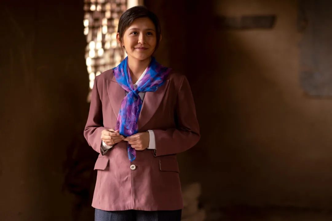 《山海情》中水花拍照时低头抿嘴笑村里宣传种蘑菇,没有人注意水花的时候,她躲在大家后面是很放松的,笑起来就不会顾及什么,但是大家都看她的时候,她是低着头抿嘴笑的。水花有自卑的一面,她怕别人看到她的缺点。这时候我的缺点反而成了我塑造人物的优势。