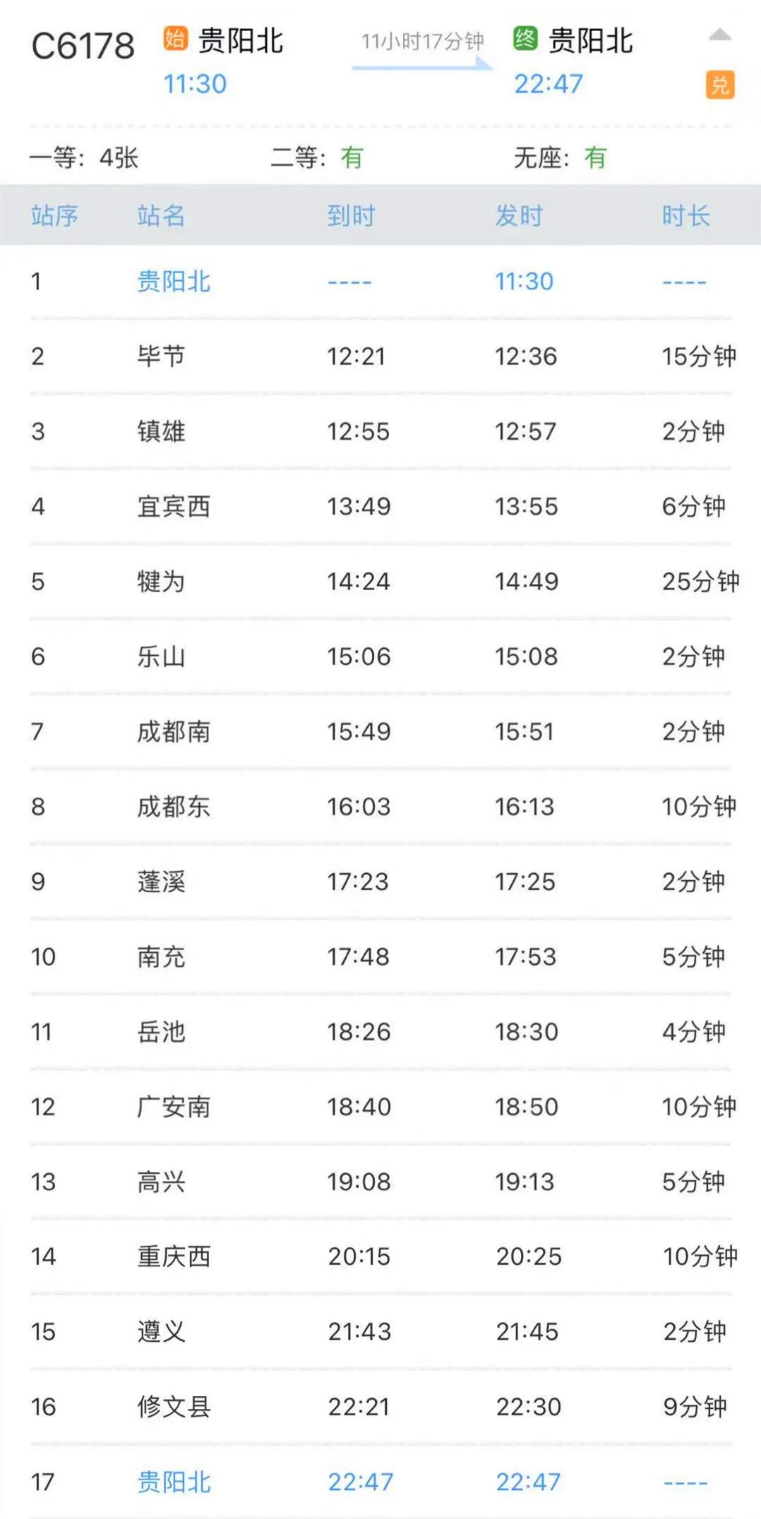 贵阳北—贵阳北的环线动车