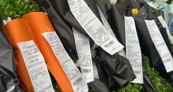 现场|快递小哥替无法到现场的网友送鲜花,订单上写了这些话
